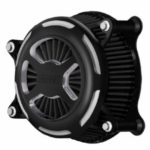 Première modification effectuée : le stage 1. Il s’agit de l’étape la plus évidente lors d’une customisation. Pour ce faire, Frédéric a choisi les silencieux Vance & Hines Twin Slash Slip-On auxquels il a ajouté une chicane silencieuse. Outre leur look fin et épuré, ces silencieux délivrent une sonorité douce au ralenti et dévoilent toute leur puissance à l’accélération. Frédéric a également choisi de remplacer le filtre à air d’origine par un filtre Vance & Hines VO2 haut débit avec finition Contrast Cut.